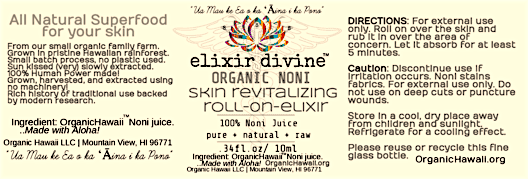 100% Pure and Raw Organic Hawaii grown Noni (Morinda citrifolia) juice direct from our small organic family farm.